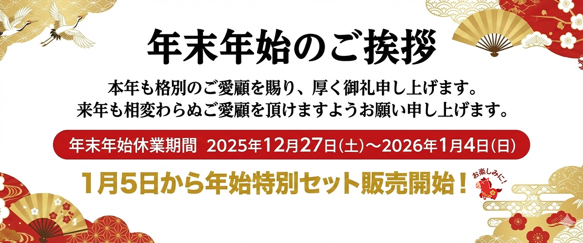 【年末年始休業期間】 2025年12月27日(土)~2026年1月4日(日)
