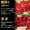 商品説明一番人気のヘルシーな赤身、ほどよいサシの甘みとトロッとした食感が楽しめる霜降り(中トロ)、